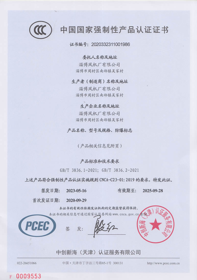 熱烈慶祝:一、淄博風機廠有限公司全系產品通過能效綠色節(jié)能環(huán)保二級認證. 二、 淄博風機廠有限公司通過安全標準化驗收合格. 三、注冊資金增資至7800萬.